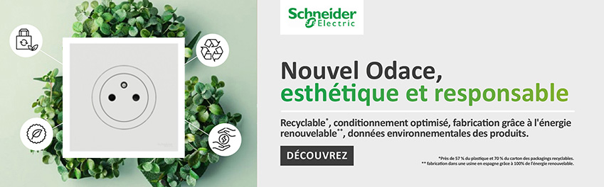 Depuis plus de 10 ans, la gamme Schneider Odace est une référence incontournable de l’appareillage électrique. Chez Elec44, nous vous proposons aussi bien l’Odace 2011, toujours disponible pour compléter vos installations existantes, que la nouvelle Odace 2025, pensée comme une véritable révolution esthétique et technique.