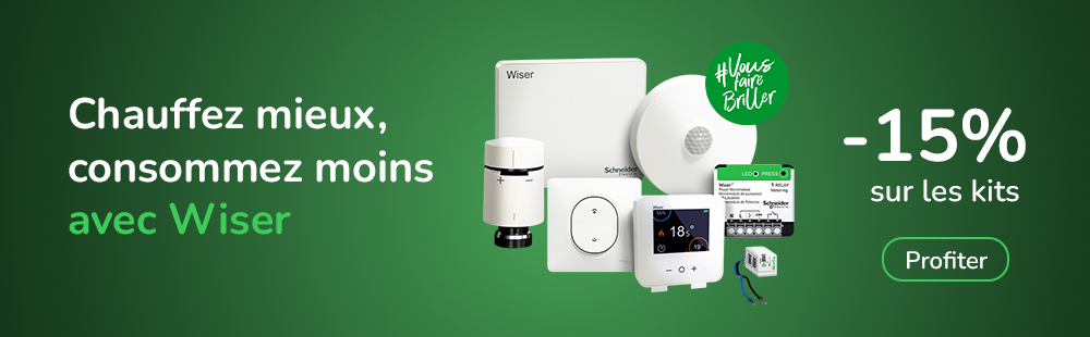 Découvrez Wiser sur Elec44, la solution connectée de Schneider Electric qui transforme votre habitat en un véritable foyer intelligent. Avec Wiser, simplifiez la gestion de votre confort, optimisez votre consommation d'énergie, et améliorez votre quotidien grâce à des équipements design, fiables et intuitifs. Explorez nos catégories de produits pour trouver les solutions qui s’adaptent à vos besoins.