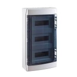 Coffret de Distribution Étanche 3 X 12 Modules IP65 particulièrement adaptés aux environnements industriels, sites navals, piscines ou garages. Tous lieux exigeant un degré de protection élevé contre la poussière, les éclaboussures et les chocs. Livré sans barrette de terre.