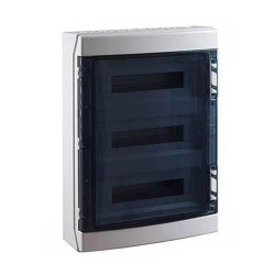 Coffret de Distribution Étanche 3 X 18 Modules IP65 particulièrement adaptés aux environnements industriels, sites navals, piscines ou garages. Tous lieux exigeant un degré de protection élevé contre la poussière, les éclaboussures et les chocs. Livré sans barrette de terre.