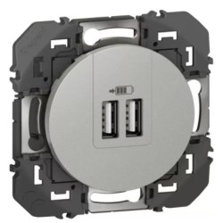 - Chargeur 2 USB Type-A 3A 15W dooxie - Aluminium - À équiper d'une plaque