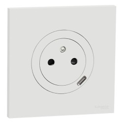 Ensemble complet : Prise 2P+T affleurante + chargeur USB-C livrée avec sa plaque de finition.