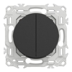 La commande Odace double multifonction combine en une seule référence un double interrupteur, va-et-vient et poussoir. Livré en mode va-et-vient, le mécanisme peut se transformer en poussoir d’un simple quart de tour avec un tournevis.