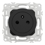 Ensemble complet : Prise 2P+T affleurante noir onyx livrée avec sa plaque de finition métal effet laiton.