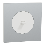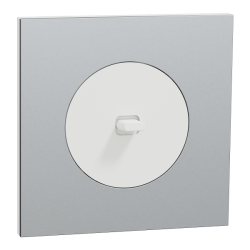 Ensemble complet : Va-et-vient ou poussoir à levier blanc craie livré avec sa plaque de finition métal effet Aluminium support blanc.