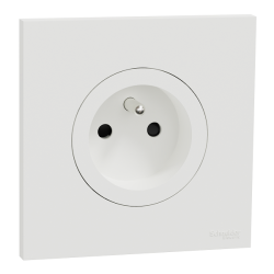 Ensemble complet : Prise 2P+T rénovation à puits, livrée avec sa plaque de finition blanc craie.