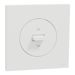 Ensemble complet : inter ou poussoir volet roulant 3 positions à levier, livré avec sa plaque de finition blanc craie.