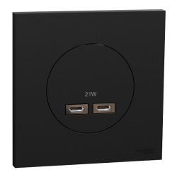 Ensemble complet : chargeur double USB type C+C , livré avec sa plaque de finition noir onyx.