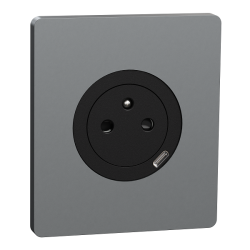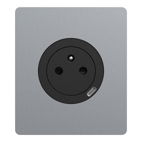 Ensemble complet : Prise 2P+T affleurante + chargeur USB-C noir, livrée avec sa plaque de finition Architecte couleur titane.