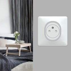 Ce pack inclut tout le nécessaire pour assembler une prise complète : mécanisme 16A et plaque blanche avec bague effet argent pour une fixation simple.