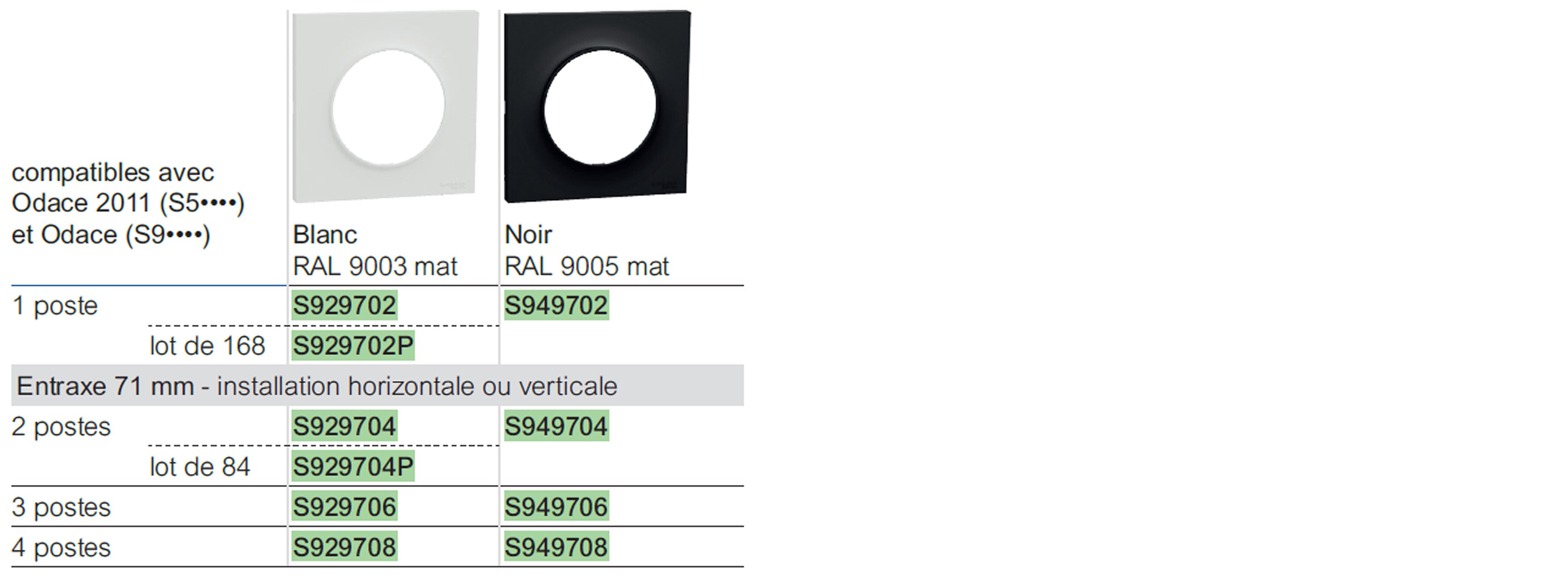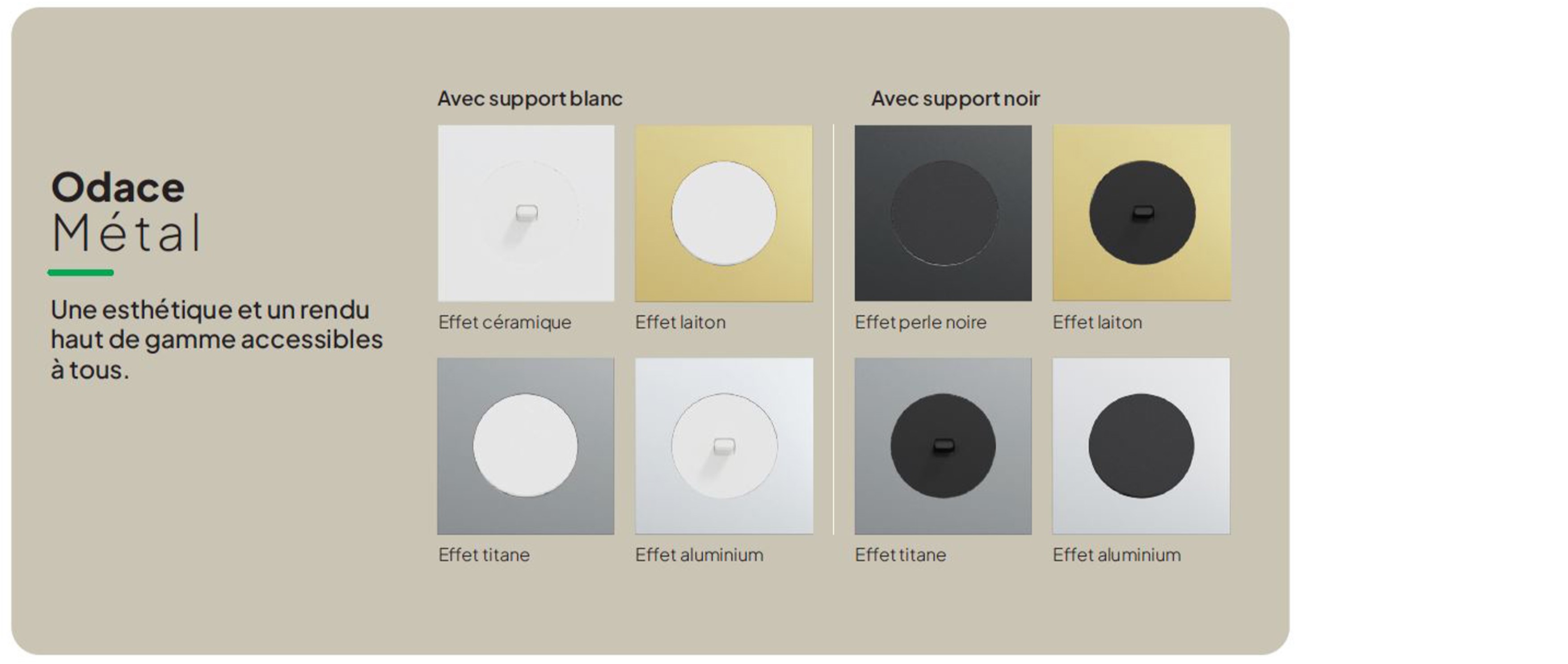 Gamme Odace : Couleur, Métal et Architecte : non compatible