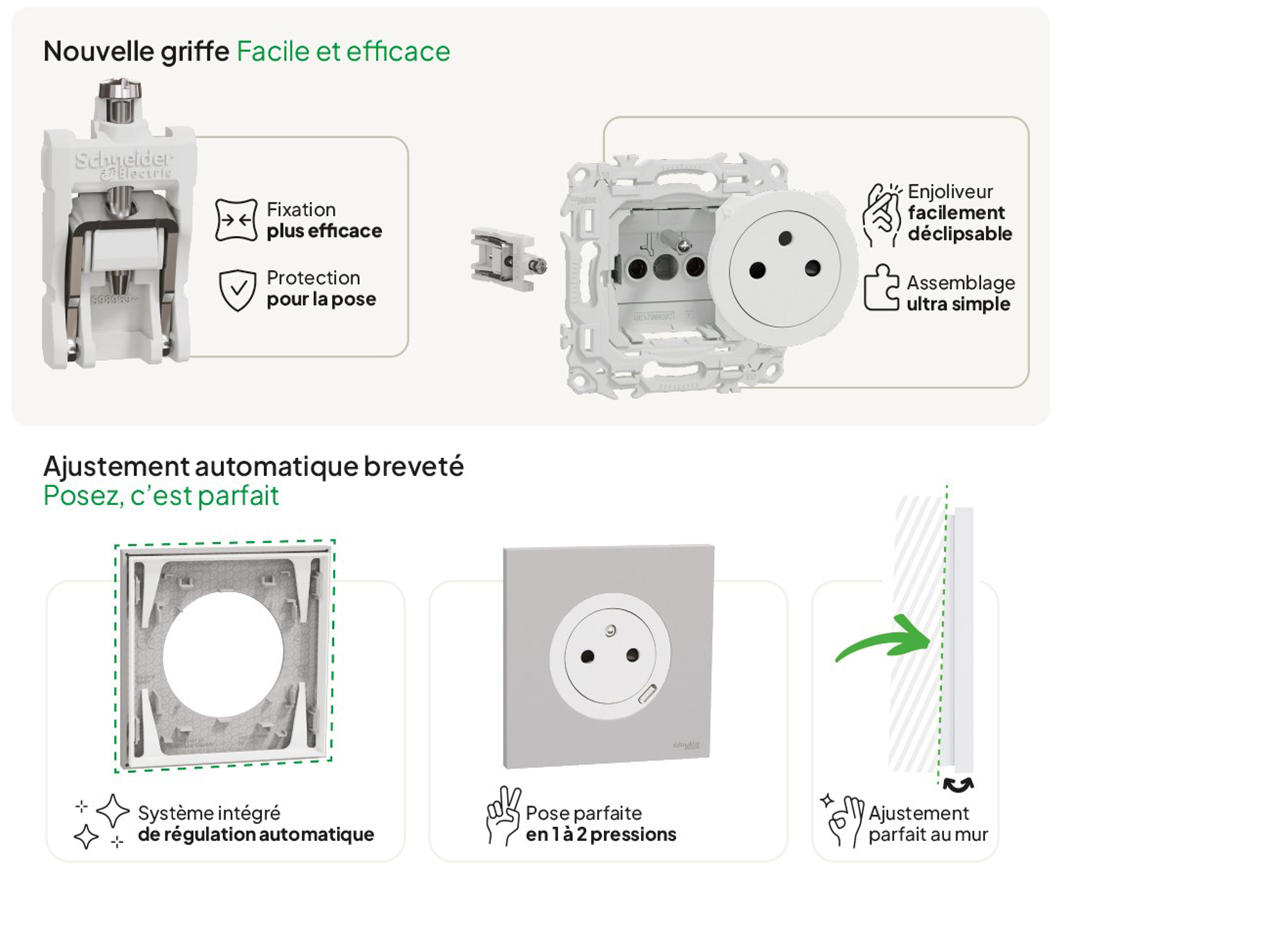 La nouvelle gamme Odace n’est pas compatible avec l’ancienne. Les nouveaux mécanismes, plaques et accessoires ont été repensés avec des dimensions et des systèmes de fixation différents. Il n’est donc pas possible de mélanger les deux générations dans une même installation.