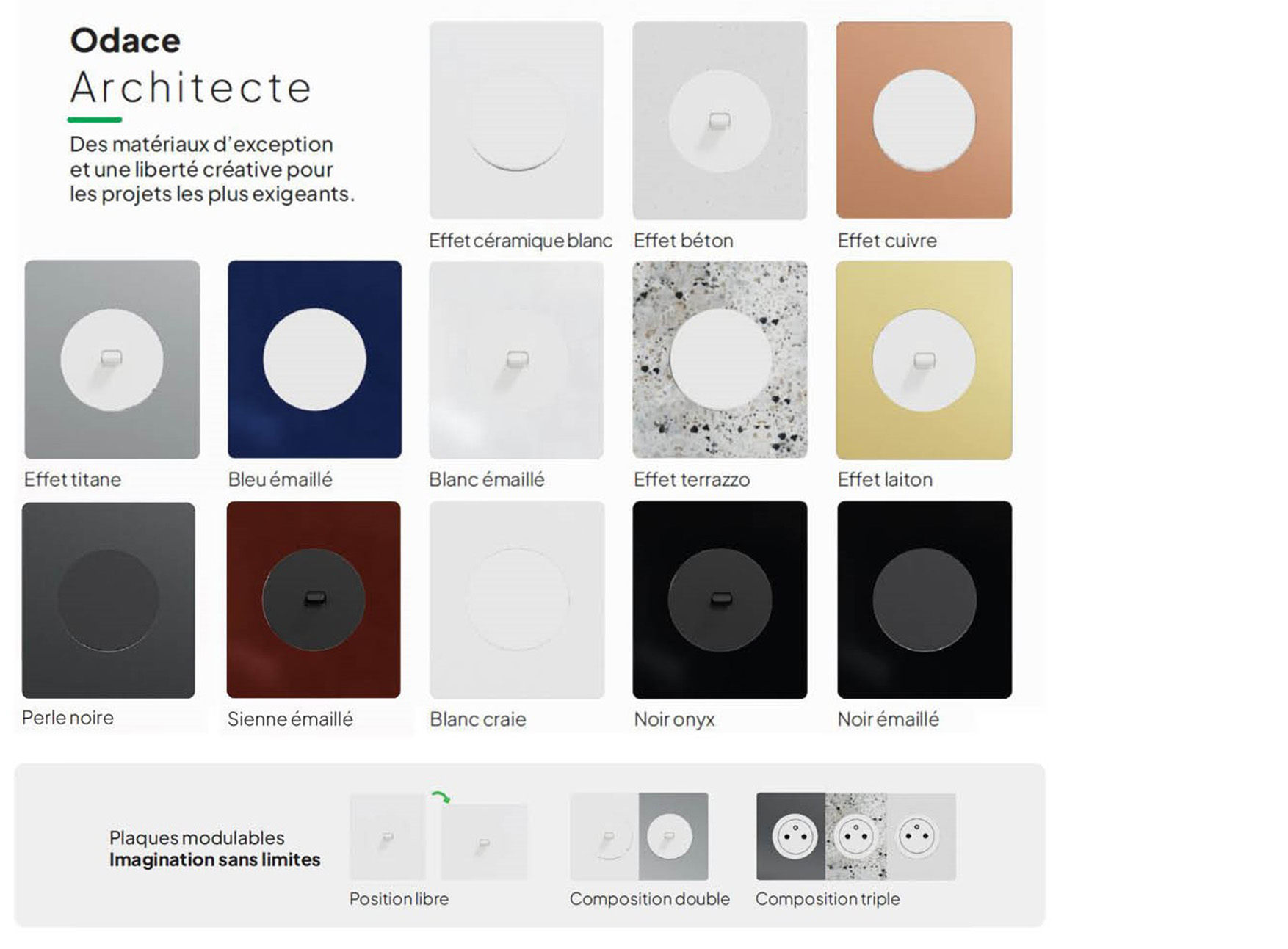 • 3 gammes distinctes : Odace, Odace Métal, Odace Architecte
