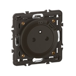Prise de courant avec prise USB Céliane livrée avec support et enjoliveur, à combiner avec une plaque de finition Céliane.