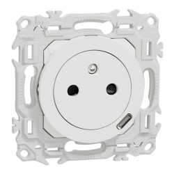 Cette prise s’associe avec une plaque de finition Odace (2025) et une boîte d’encastrement.