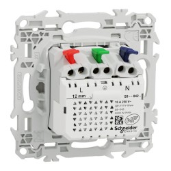 Grâce à son fond mobile affleurant, la connexion d’appareils électriques se fait sans effort. La prise protège de la poussière et ses éclipses de protection enfant renforcent la sécurité. Les bornes automatiques sans vis permettent une connexion rapide et fiable, sans outil, jusqu’à 2 câbles de 2,5 mm² rigides ou souples & multibrins par pôle.