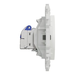 Cette prise s’associe avec une plaque de finition Odace (2025) et une boîte d’encastrement.