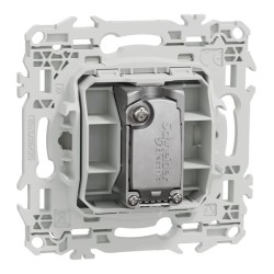 La prise est livrée avec son support de fixation intégré et un cache peinture. Elle doit être associée à une plaque de finition Odace, Odace Métal, Odace Architecte ou Odace Origine.