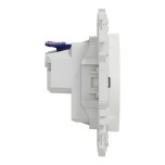 Disponible en blanc et en noir, la gamme Odace propose également de nombreuses variantes : prises affleurantes, modèles spéciaux rénovation, prises avec chargeur USB-C jusqu’à 65 W, versions précâblées ou connectées Wiser. Une version affleurante sans enjoliveur existe également pour offrir la possibilité de choisir la couleur au dernier moment sur le chantier.