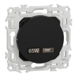 Ce chargeur s’associe avec une plaque de finition Odace (2025) et une boîte d’encastrement.