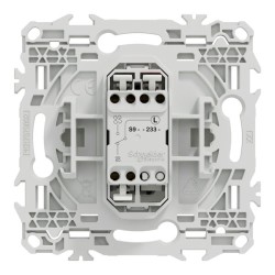 Grâce à ses 3 bornes automatiques, le raccordement des câbles jusqu’à 2 x 1,5 mm² rigides, souples ou multibrins est rapide et sécurisé, réduisant les risques d’erreur et simplifiant l’installation. Sa fixation robuste et son support rigide permettent un montage fiable sur tout type de boîte d’encastrement, avec vis ou griffes clipsables en option pour la rénovation.
