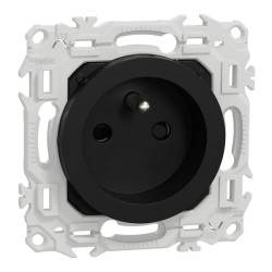 Cette prise s’associe avec une plaque de finition Odace (2025) et une boîte d’encastrement.