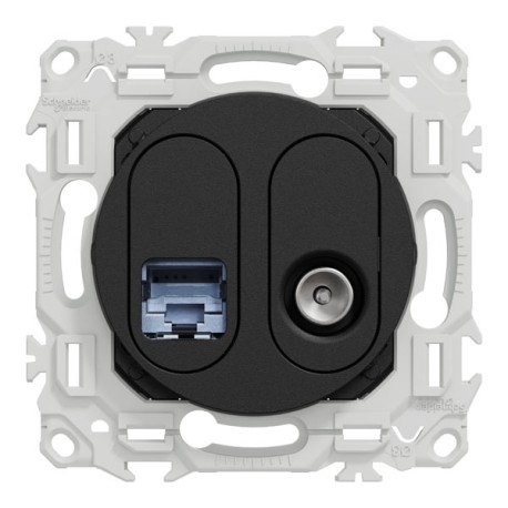 La prise mixte RJ45 + TV Odace combine deux fonctions en un seul poste : une prise RJ45 (8 contacts) pour les données haut débit et une prise TV pour vos équipements multimédias. Elle garantit des performances optimisées pour une connexion stable et fiable, que ce soit pour la télévision ou la transmission de données.
