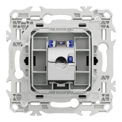La fixation est simple et robuste sur tout type de boîte d’encastrement grâce à son support rigide à vis. Le connecteur S-One monobloc facilite le câblage, avec un montage et démontage rapide du câble RJ45.