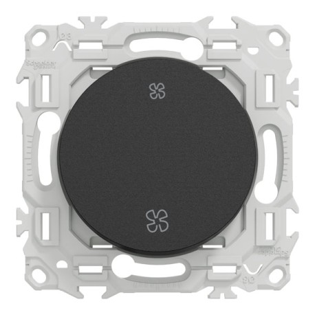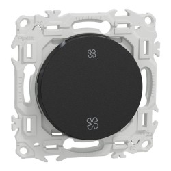 Cet interrupteur/poussoir VMC s’associe avec une plaque de finition Odace (2025) et une boîte d’encastrement.