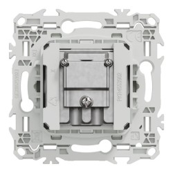 La prise est livrée avec son support de fixation intégré et un cache peinture. Elle doit être associée à une plaque de finition Odace, Odace Métal, Odace Architecte ou Odace Origine.
