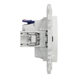 Grâce à son support rigide à griffes montées, la fixation du mécanisme est simple et robuste, idéale pour la rénovation. La connexion est rapide et fiable sans outil grâce aux bornes automatiques sans vis, permettant le raccordement jusqu’à 2 câbles de 2,5 mm² rigides, souples ou multibrins pour chaque pôle.