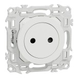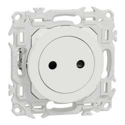 Cette prise s’associe avec une plaque de finition Odace (2025) et une boîte d’encastrement.