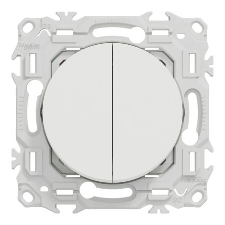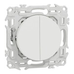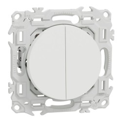 La commande Odace multifonctionnelle double regroupe interrupteur, va-et-vient et poussoir en une seule référence. Livré en mode va-et-vient, le mécanisme se transforme en un quart de tour en poussoir à l’aide d’un simple tournevis. Cette version propose une esthétique à bascule, mais elle peut évoluer facilement vers une esthétique à levier ou intégrale en remplaçant son enjoliveur.