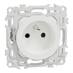 Cette prise s’associe avec une plaque de finition Odace (2025) et une boîte d’encastrement.