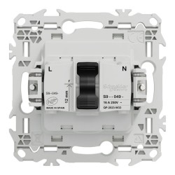 Grâce à son support rigide à vis ou à griffes, la fixation du mécanisme est simple et robuste, idéale pour la rénovation. La connexion est rapide et fiable sans outil grâce aux bornes automatiques sans vis, permettant le raccordement jusqu’à 4 câbles de 2,5 mm² rigides, souples ou multibrins pour chaque pôle.