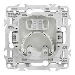 Elle convient pour des câbles de 6 à 12 mm, grâce à une partie mobile permettant d’ajuster l’esthétique en fonction du diamètre du câble, pour une installation propre et soignée. La fixation du mécanisme est facile et robuste sur tout type de boîte d’encastrement grâce à son support rigide et à ses griffes livrées montées, idéales pour la rénovation.