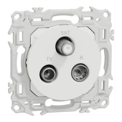 La prise TV/FM/SAT Odace est une solution polyvalente et élégante qui regroupe en un seul produit trois connexions essentielles : télévision, radio FM et satellite. Elle permet d’optimiser l’installation multimédia de vos espaces tout en garantissant une finition soignée.