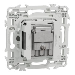 La prise est livrée avec son support de fixation intégré et un cache peinture. Elle doit être associée à une plaque de finition Odace, Odace Métal, Odace Architecte ou Odace Origine.