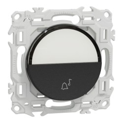 Ce bouton poussoir s’associe avec une plaque de finition Odace (2025) et une boîte d’encastrement.