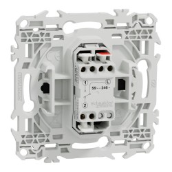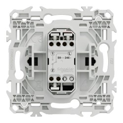 Grâce à sa fixation robuste et à son support rigide, le mécanisme s’installe facilement dans toute boîte d’encastrement, avec vis ou griffes clipsables en option, idéales pour la rénovation. Les bornes automatiques permettent un raccordement rapide et sécurisé des câbles jusqu’à 2 x 1,5 mm² rigides, souples ou multibrins, réduisant le temps de montage et limitant les risques d’erreur.