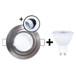 Ce pack spot encastré fixe est à assembler, il inclut un support de spot, une ampoule LED GU10 et une douille GU10 prête à raccorder.