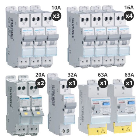 Lot de disjoncteurs + interrupteurs différentiels pour coffret 2 rangées.